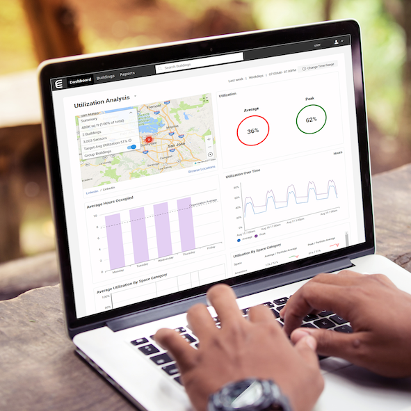 Echtzeitdaten werden in umsetzbare Erkenntnisse für nachhaltige Entscheidungen beim Management von Beleuchtung, HLK, Raum und Sicherheit generiert und stehen für alle Maßnahmen zur Verfügung.